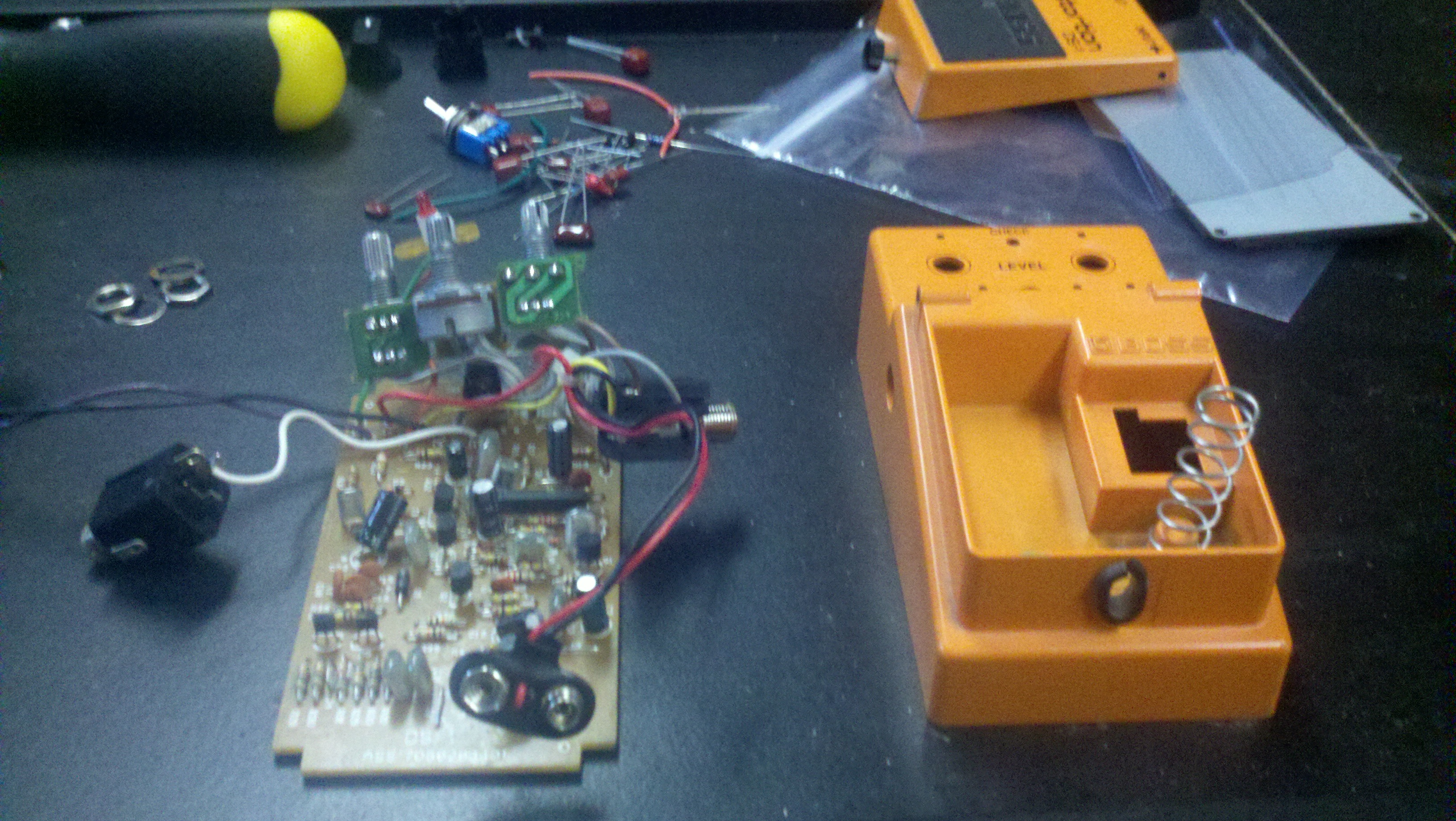 The mod took me several hours. Longer than I initially thought but not bad for my first attempt. My biggest concern was, Would it Work? I was overjoyed when I plugged it in and the new blue LED came to life. I was even more excited when I plugged my guitar in and started playing. The difference is staggering. Immediately I started looking for mod kits for some of my other pedals. My next mod will probably be to my Boss SD-1 Overdrive pedal. Like the DS-1, the SD-1 leaves a lot to be desired.
